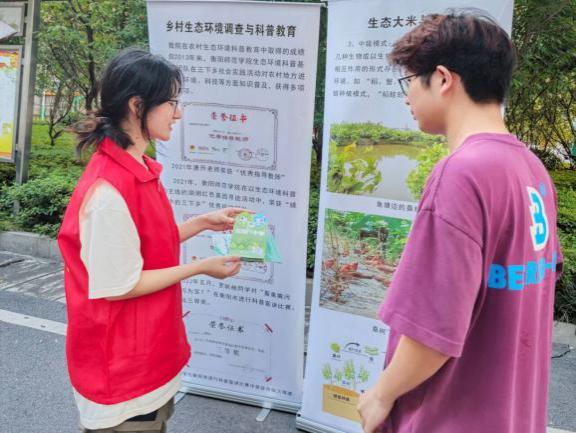 活动现场,系列展板有序排布,“绿色卫士”志愿者们化身生态科普使者,既详细解读湘江流域衡阳段的污染成因、治理技术及水生生物保护知识,让师生深入了解家乡母亲河生态现状;工业园搞“废水循环+固废回收”,废水净化浇农田、固废变建材,既少污染,又帮企业降成本;还结合本地乡村案例,于“乡村生态治理”板块分析群众参与、制度建设的关键作用,凸显“我是行动者”的重要意义。